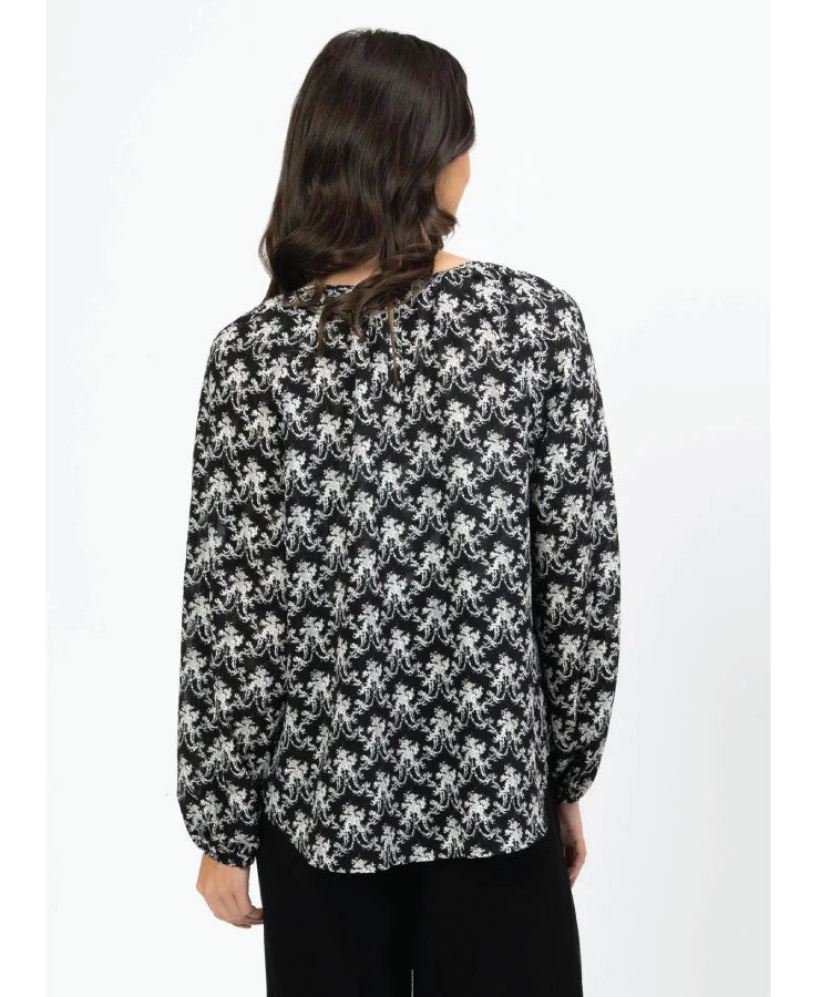 The Seeking Lola United Top in Hydrangea is a stylish and versatile blouse that effortlessly combines comfort with contemporary design. Crafted from a blend of 60% Tencel and 40% Nylon, it offers a soft and breathable feel against the skin. The top features a flattering v-neckline and elastic cuffs, adding a touch of sophistication to its relaxed fit.